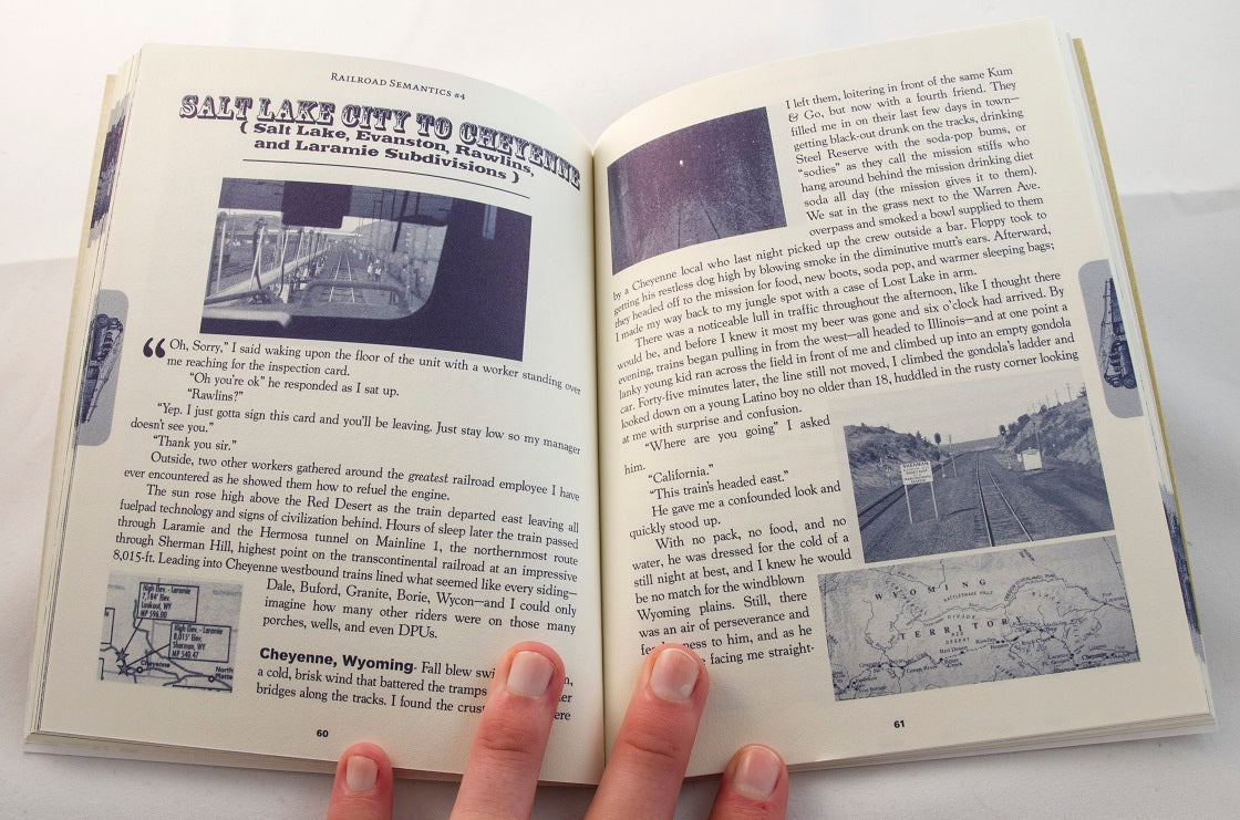 The first four Railroad Semantics zines were made into bookS. You'll find epic, hidden works of art, read up on rail lore and riding tips, meet rail workers and fellow adventurers, and experience the perils and glories of life in rail yards, train cars, small towns, and encampments.